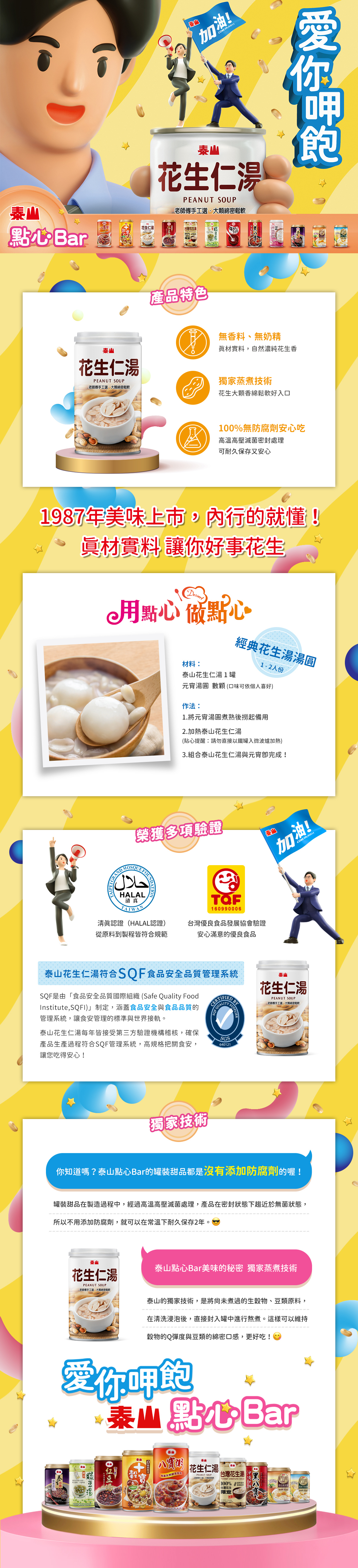 • 獨家蒸煮技術: 花生香綿鬆軟